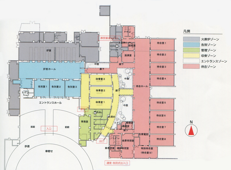 | 待合室数 | 3室(和室15畳 和室15畳 和室21畳) | 待合室利用人数 | 約120名 |